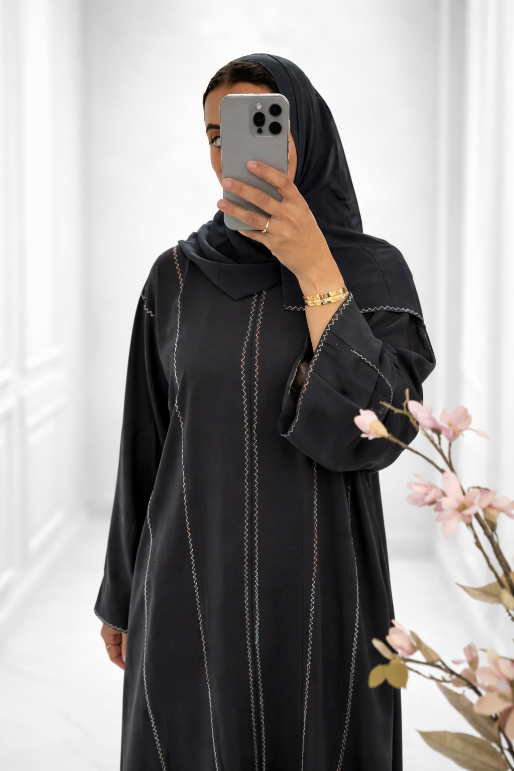 ✓ Drukknoopsluiting, zodat de abaya open of gesloten gedragen kan worden.