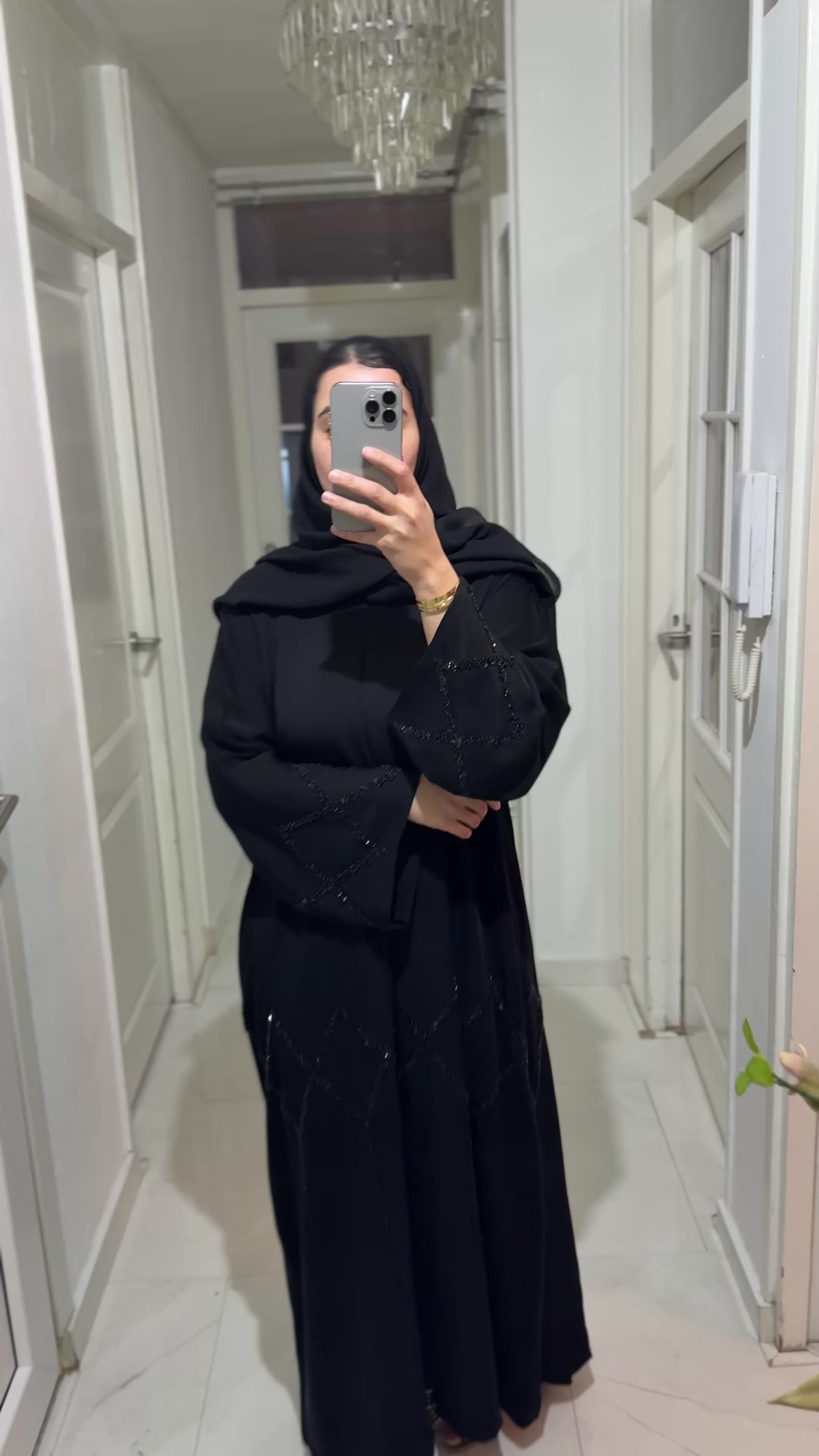 This set includes the abaya, a matching underdress, and a hijab for a complete look.